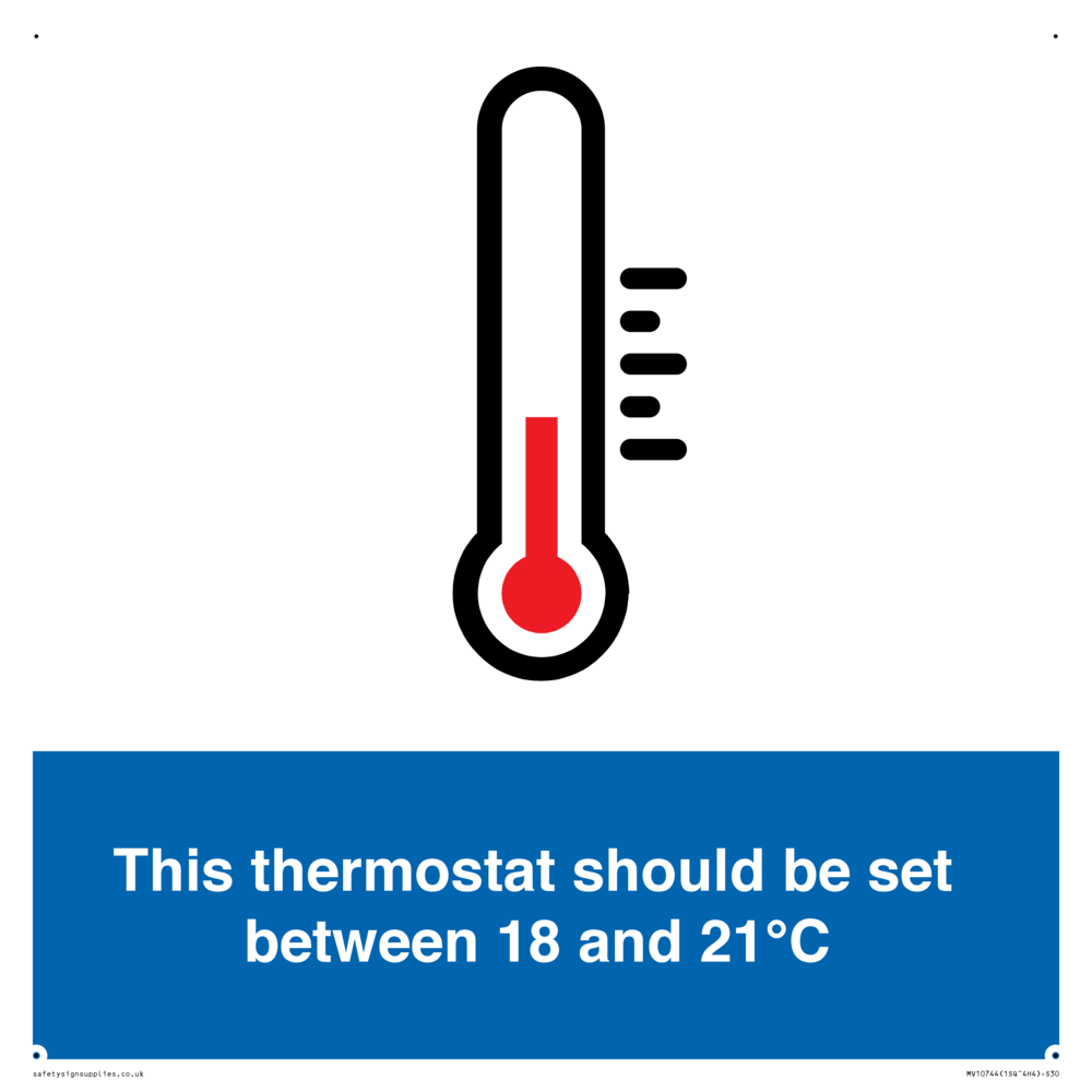 This thermostat should be set between 18 and 21°C Sign