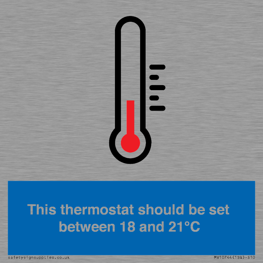 This thermostat should be set between 18 and 21°C Sign