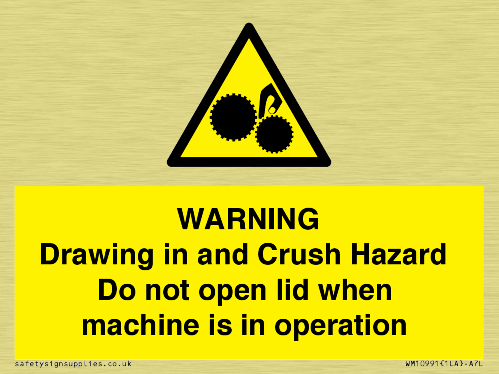 Warning Drawing in and Crush Hazard Sign
