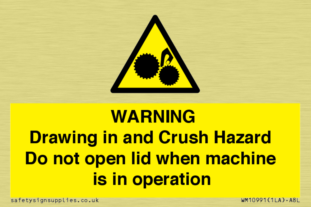 WARNING Drawing in and Crush Hazard Do not open lid when machine is in operation