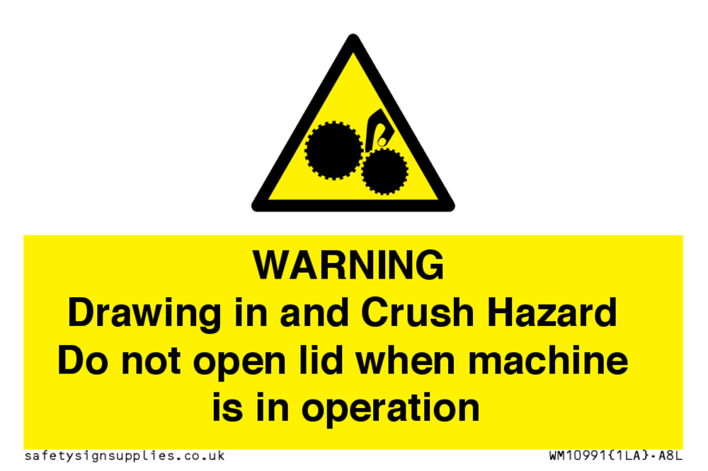 Warning Drawing in and Crush Hazard Sign