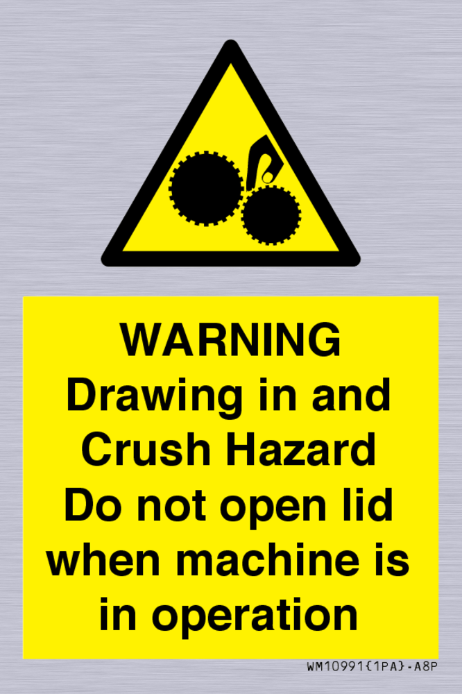 Warning Drawing in and Crush Hazard Sign