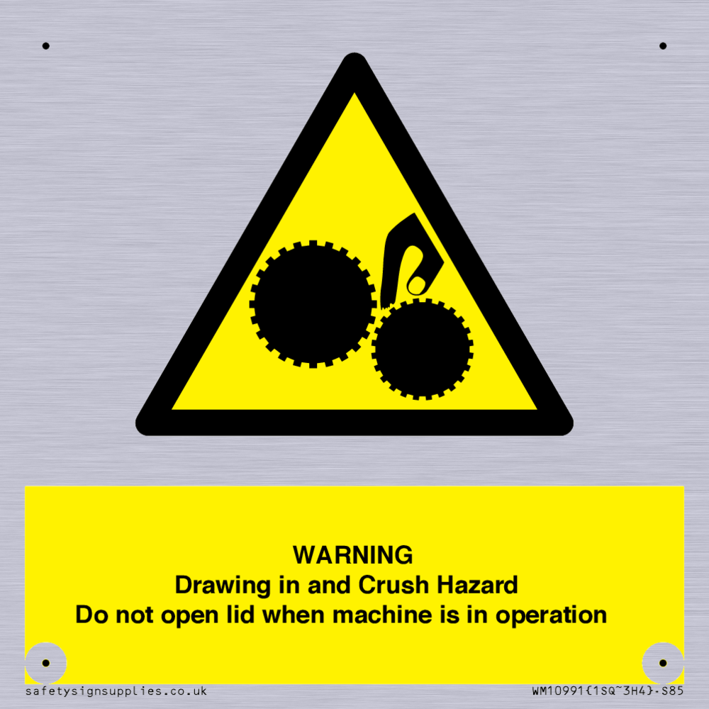 Warning Drawing in and Crush Hazard Sign