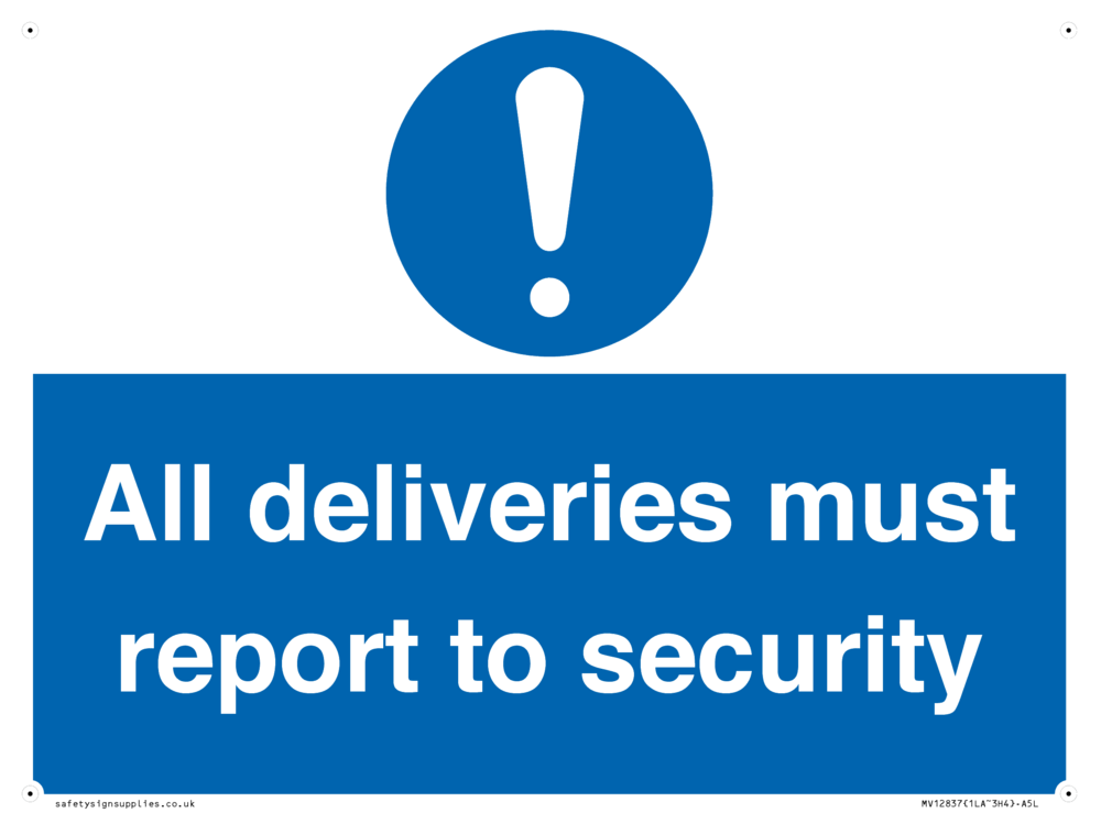 All deliveries must report to security Sign