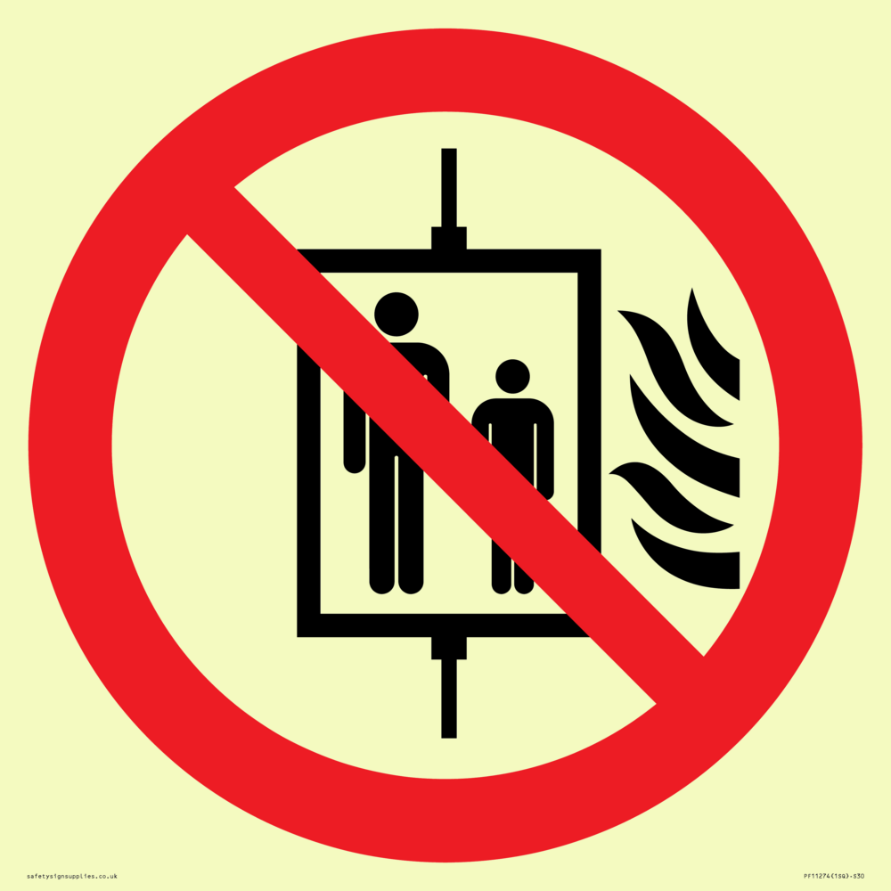 P020 Prohibition: Do not use lift in the event of fire