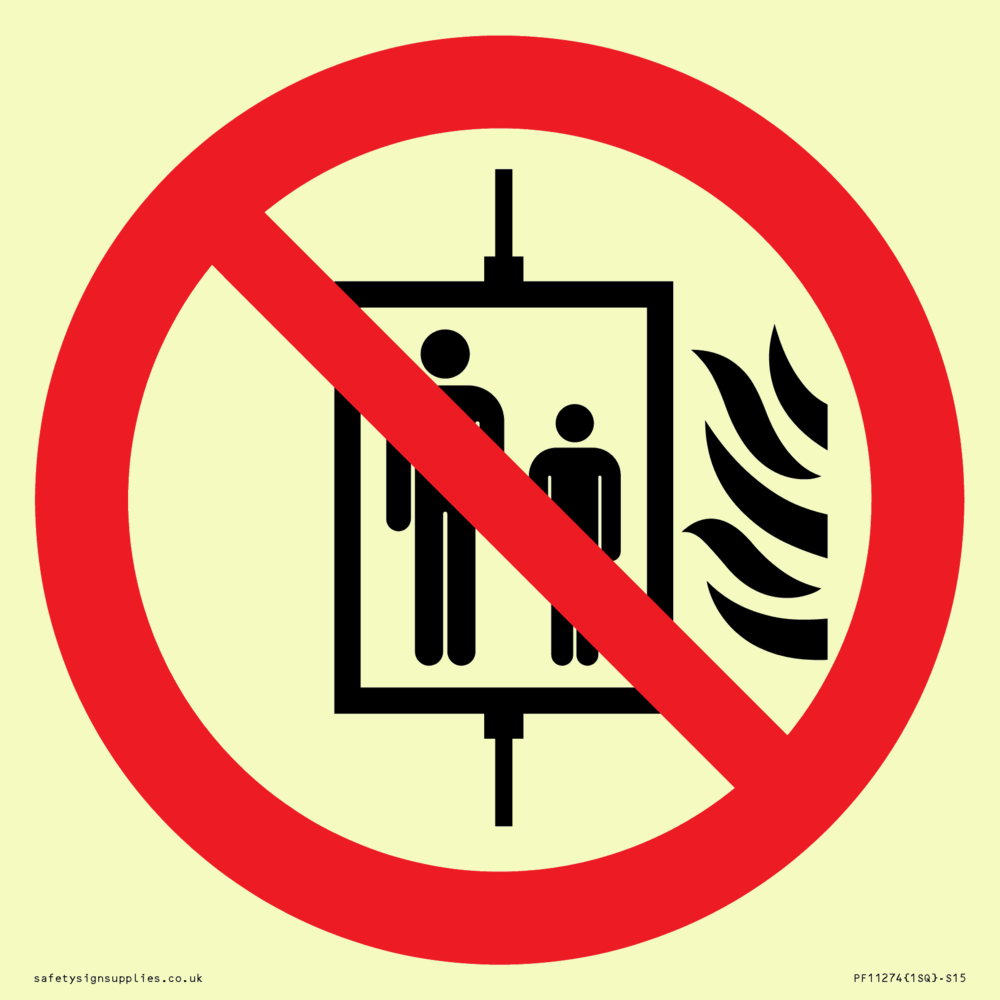 P020 Prohibition: Do not use lift in the event of fire