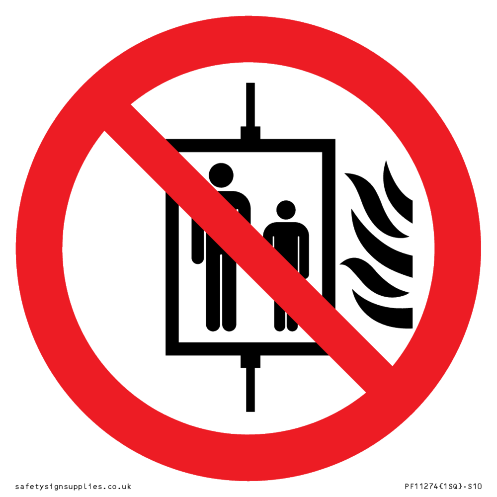 P020 Prohibition: Do not use lift in the event of fire Sign