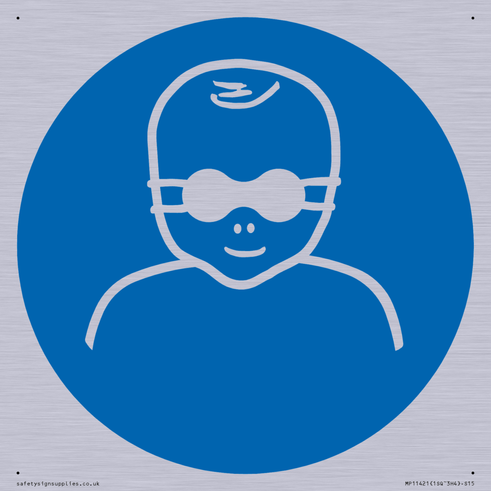 Mandatory: Protect infants eyes with opaque eye protection Sign