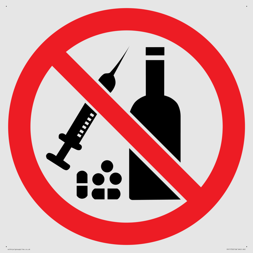 P908 Prohibition: No alcohol or drugs Sign