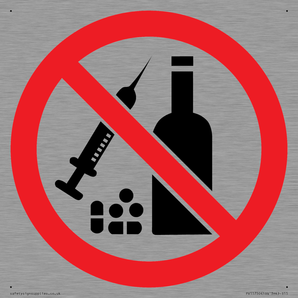 P908 Prohibition: No alcohol or drugs Sign