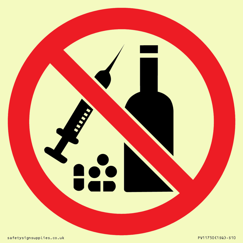 P908 Prohibition: No alcohol or drugs Sign
