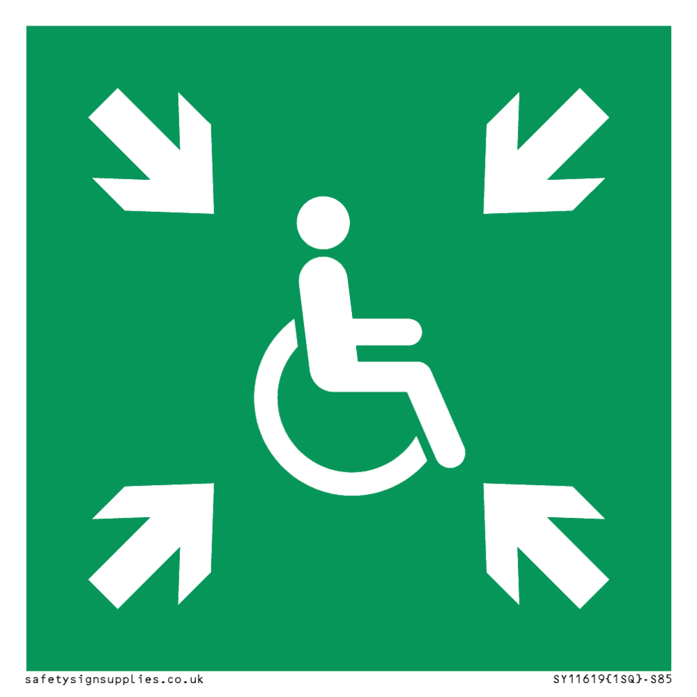 Function: To indicate the location of a temporary safe area (refuge) to await rescue assistance, provided for those unable to use stairs in the event of an evacuation.