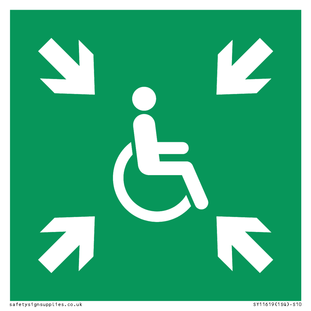 Function: To indicate the location of a temporary safe area (refuge) to await rescue assistance, provided for those unable to use stairs in the event of an evacuation.