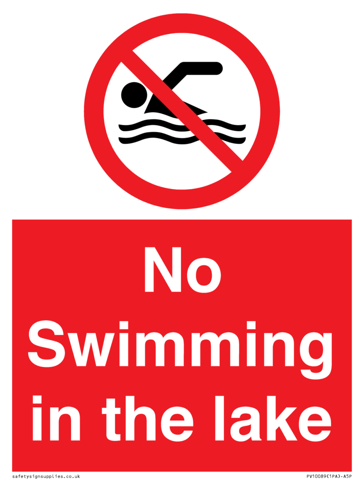 Sign Text: No Swimming in the lake