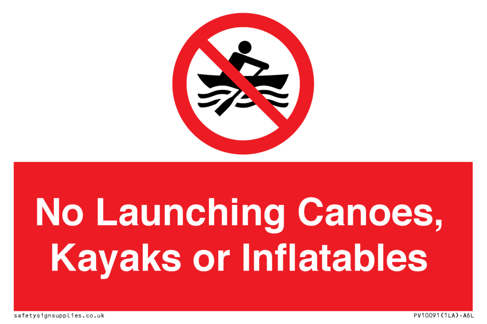 No Launching Canoes, Kayaks or Inflatables Sign