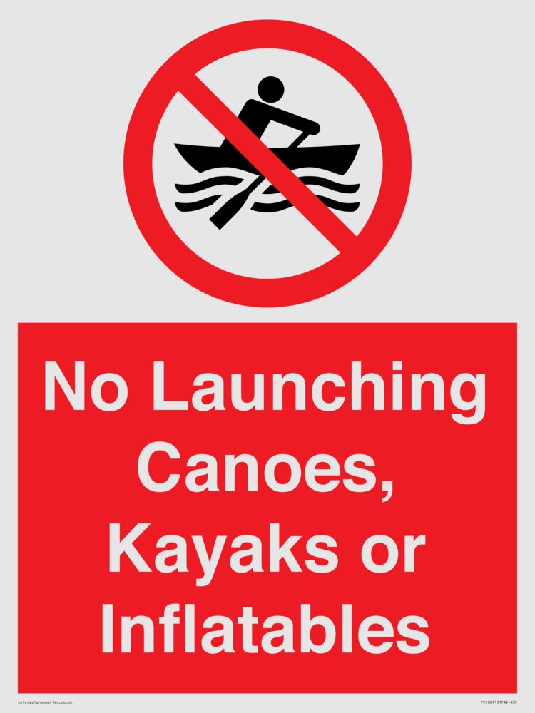 No Launching Canoes, Kayaks or Inflatables Sign