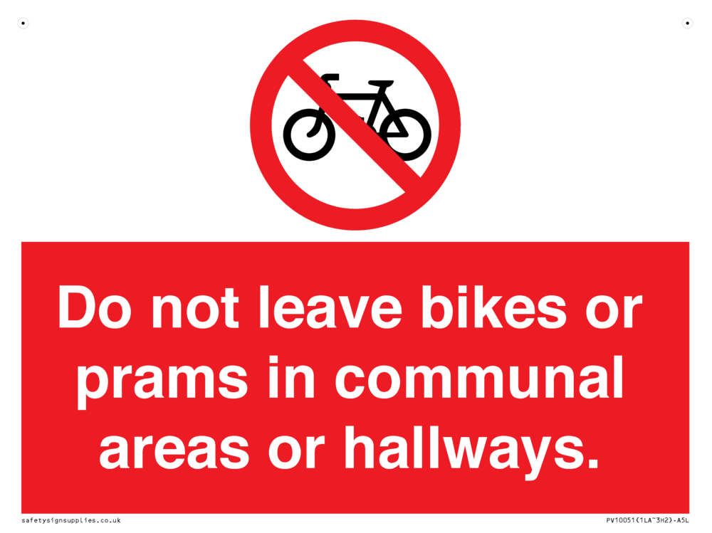 Do not leave bikes or prams in communal areas or hallways. Sign
