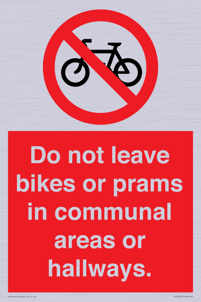 Do not leave bikes or prams in communal areas or hallways. Sign