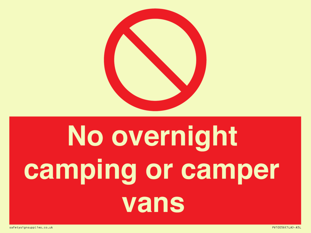 No overnight camping or camper vans Sign