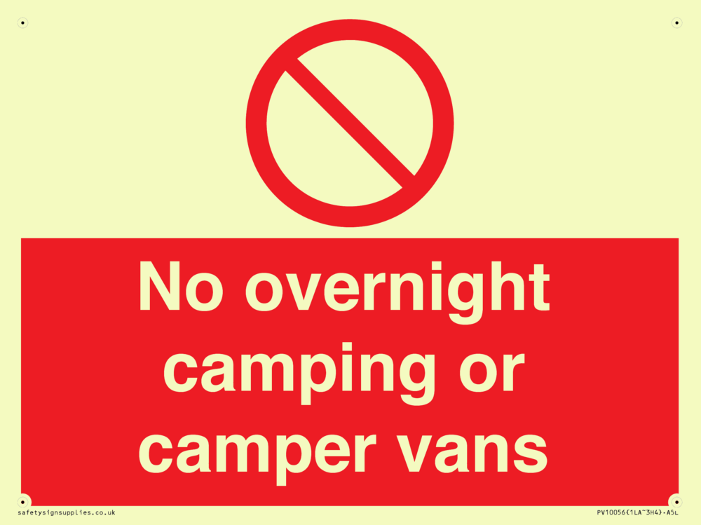 No overnight camping or camper vans Sign