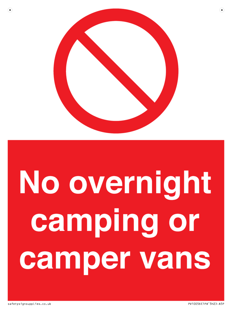 No overnight camping or camper vans Sign