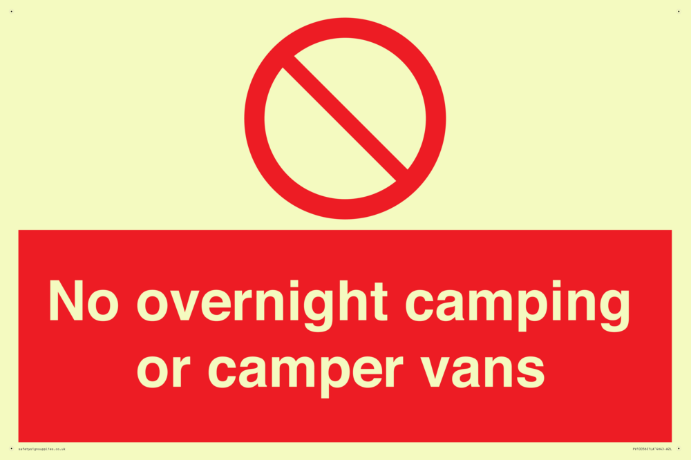 No overnight camping or camper vans Sign