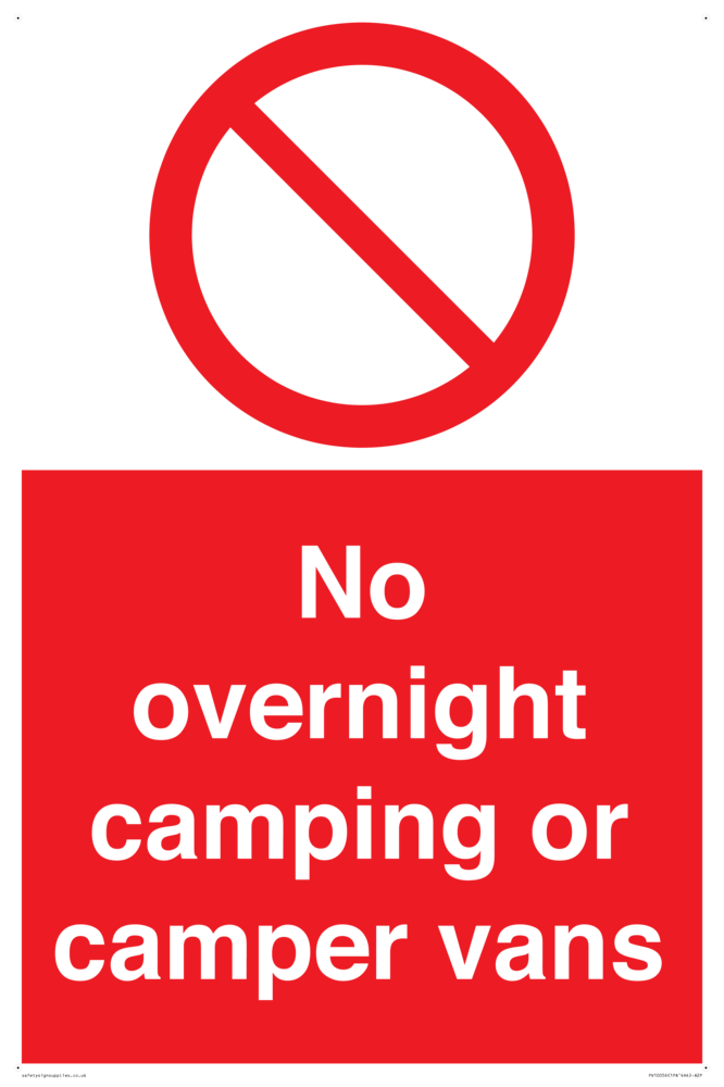 No overnight camping or camper vans Sign