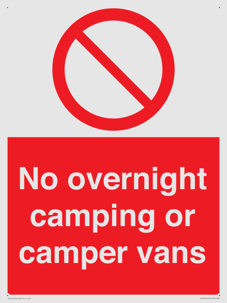 No overnight camping or camper vans Sign