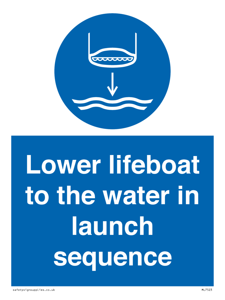 Lower lifeboat to the water in launch sequence Sign
