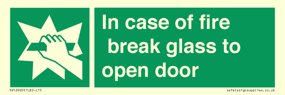 In case of fire break glass to open door