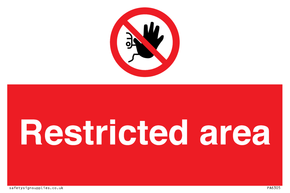This sign contains a no access symbol - person in black with red circle crossed through.