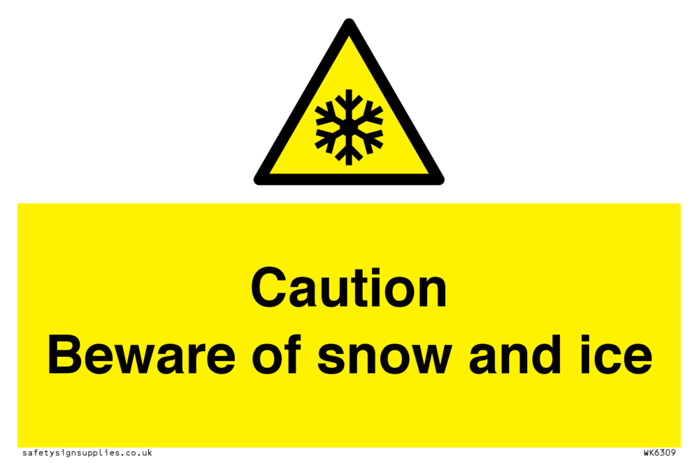 This signs contains a low temperature warning symbol. Snowflake symbol in black