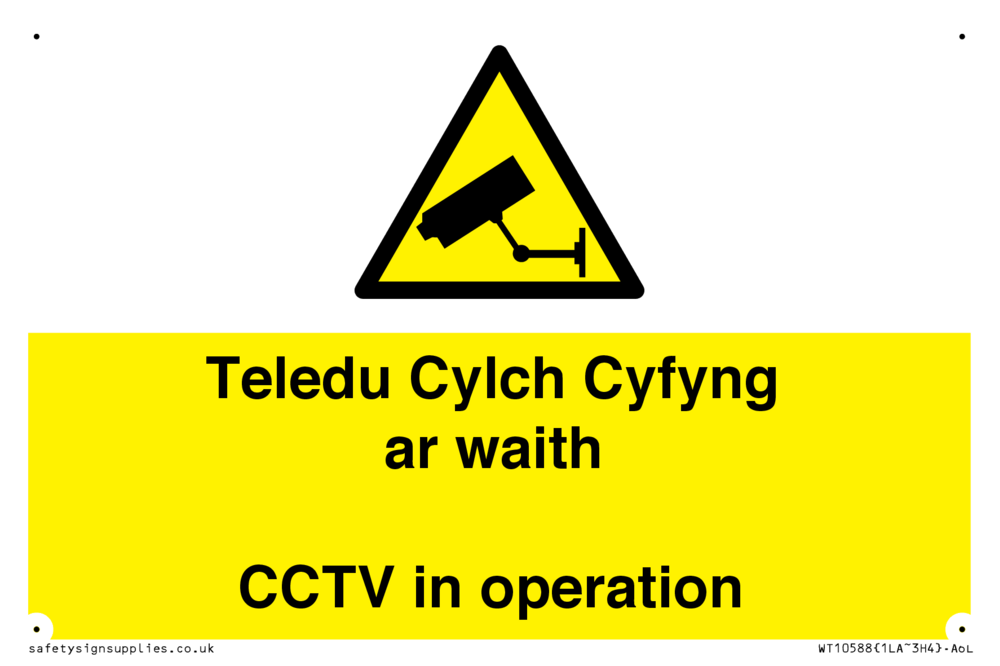 Teledu Cylch Cyfyng ar waith CCTV in operation Sign