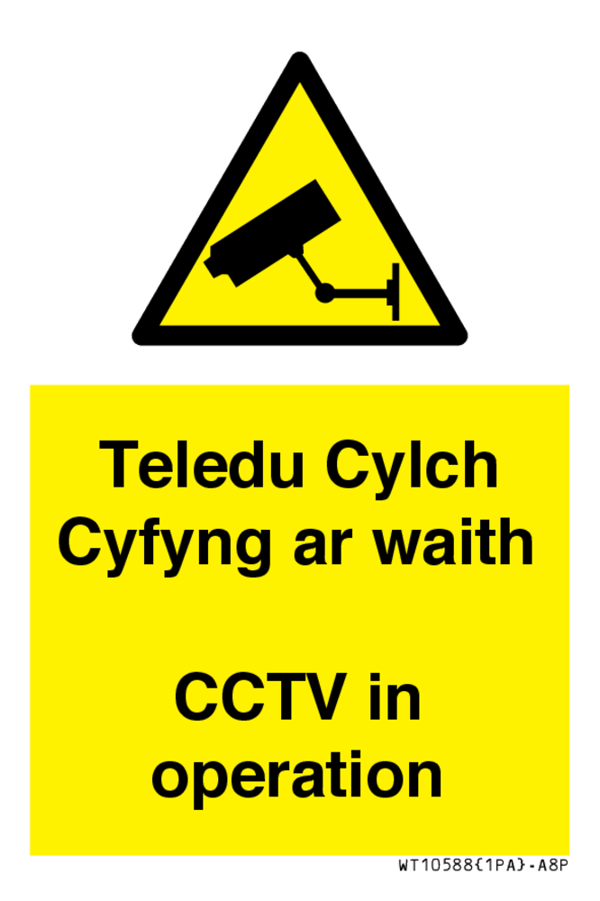 Teledu Cylch Cyfyng ar waith CCTV in operation Sign