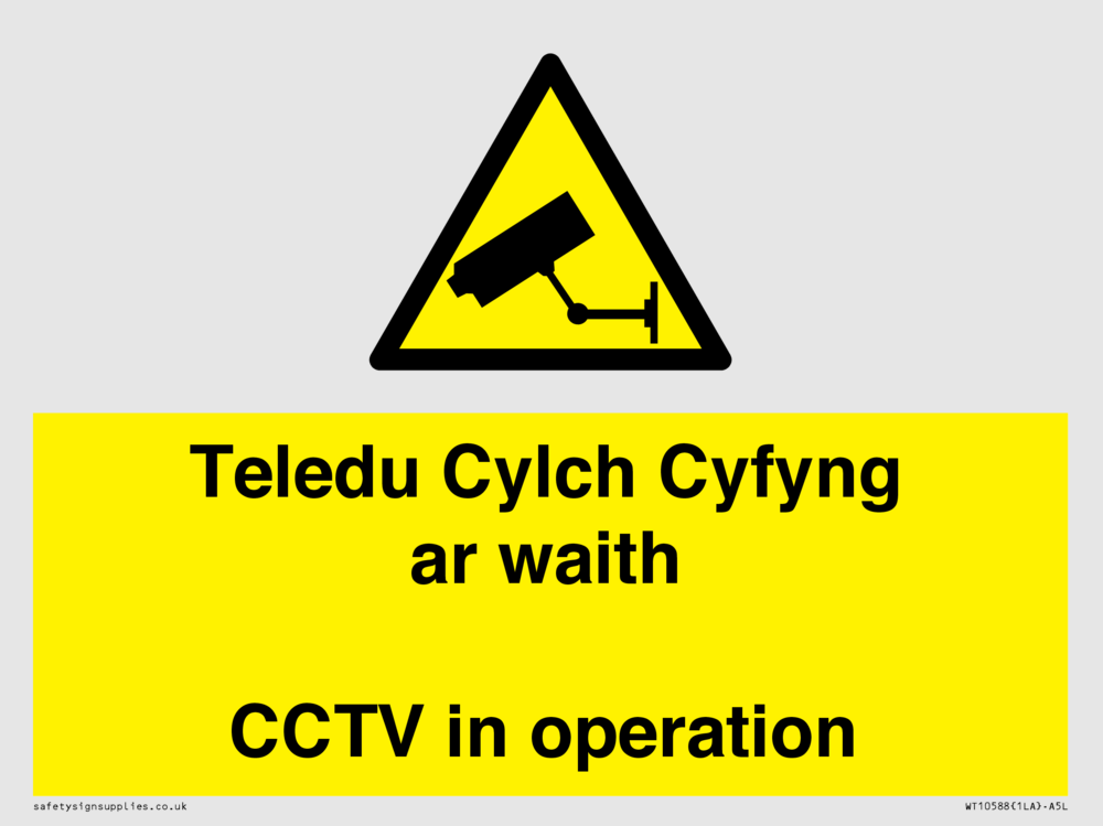 Teledu Cylch Cyfyng ar waith CCTV in operation Sign