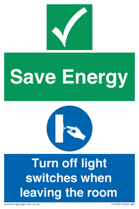 Save Energy - Please Turn off lights when leaving the room Mandatory and Safet Condition sign