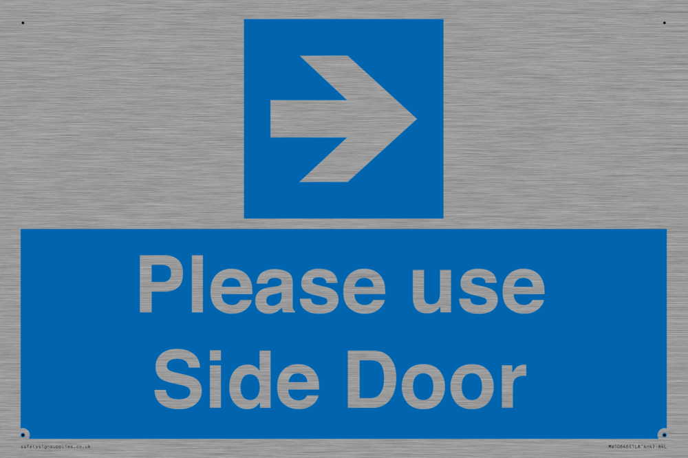 Please use Side Door (arrow Right) Sign
