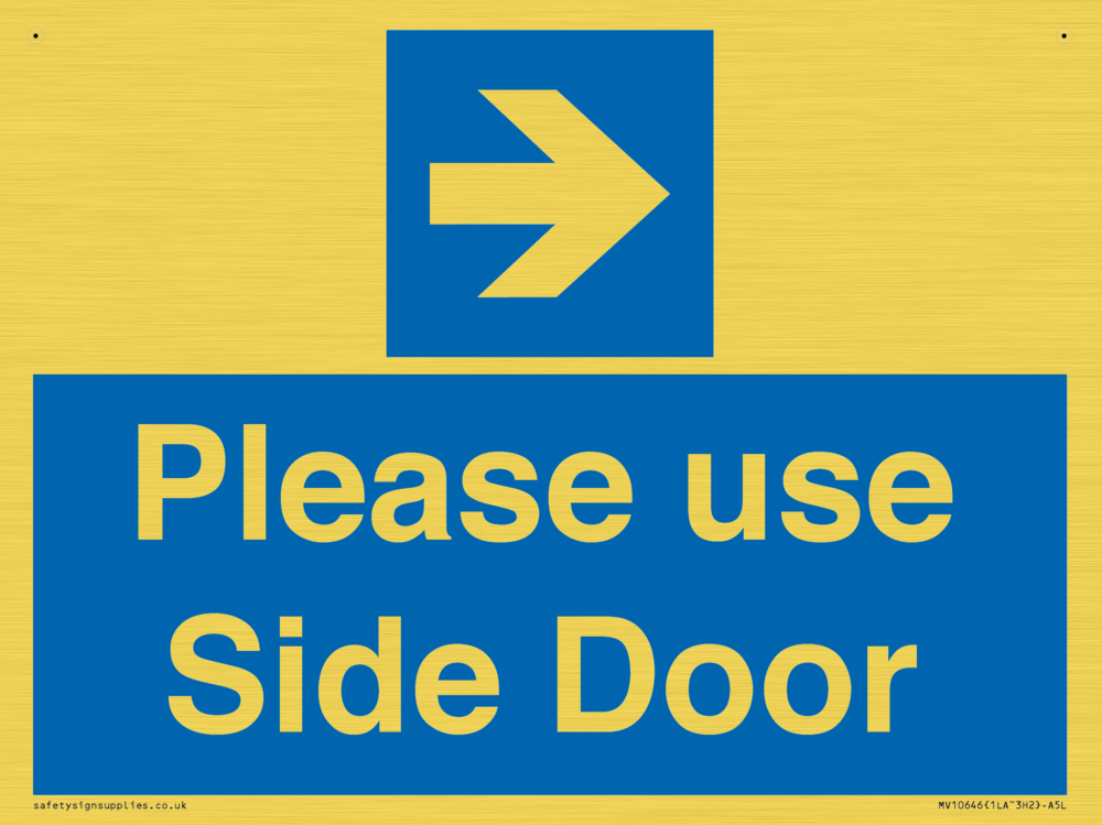 Please use Side Door (arrow Right) Sign
