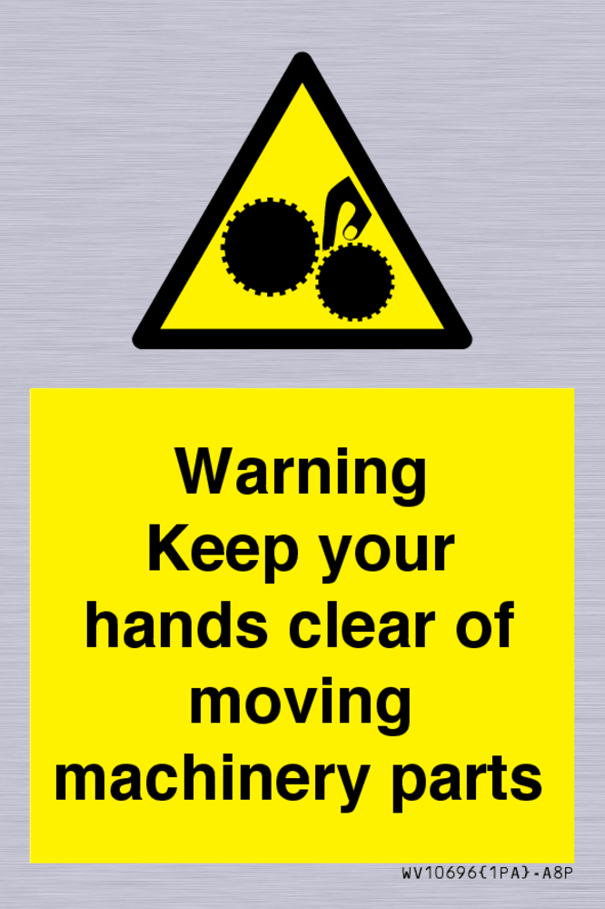 Warning - Keep your hands clear of moving machinery parts Sign