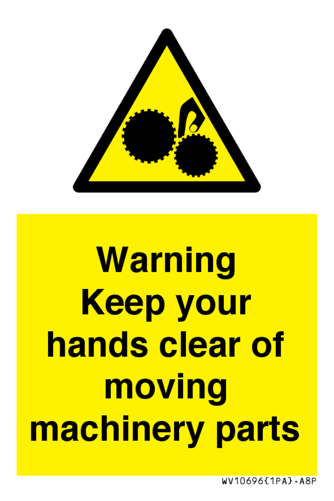 Warning - Keep your hands clear of moving machinery parts