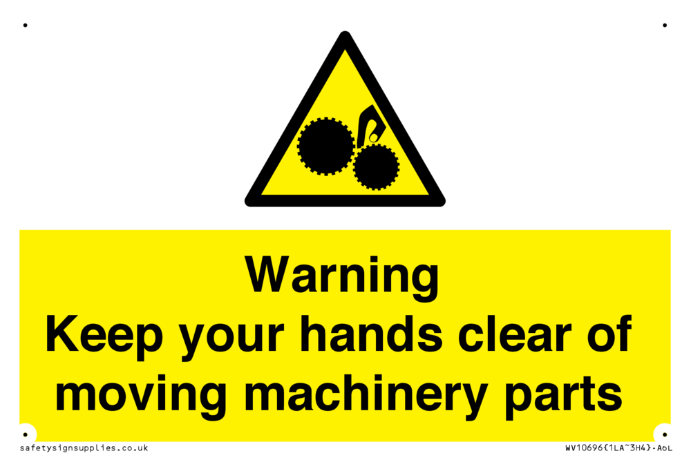 Warning - Keep your hands clear of moving machinery parts Sign