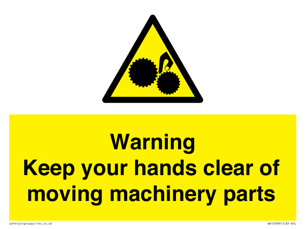Warning - Keep your hands clear of moving machinery parts Sign