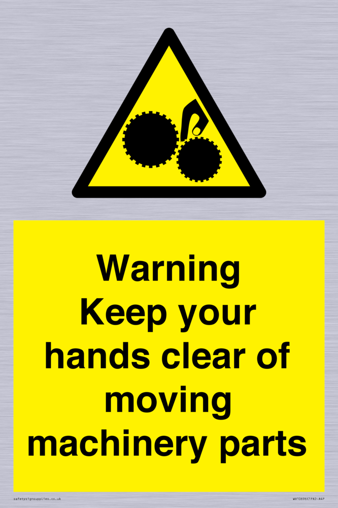 Warning - Keep your hands clear of moving machinery parts Sign