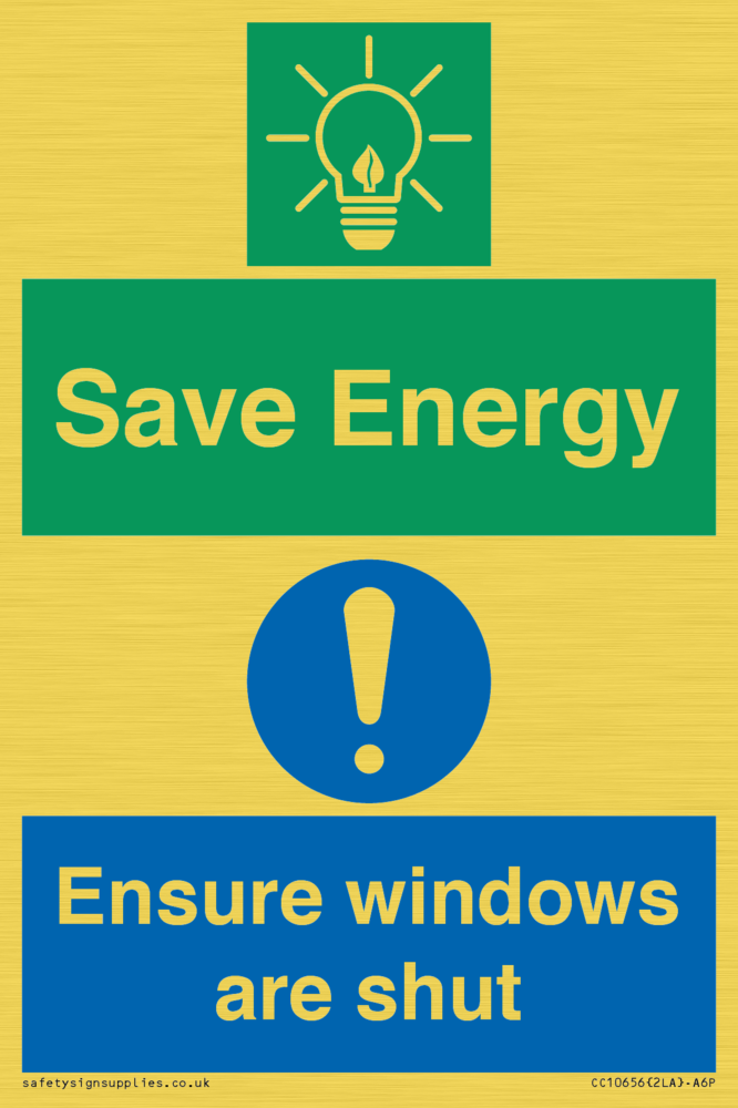 Save Energy - Ensure windows are shut Sign