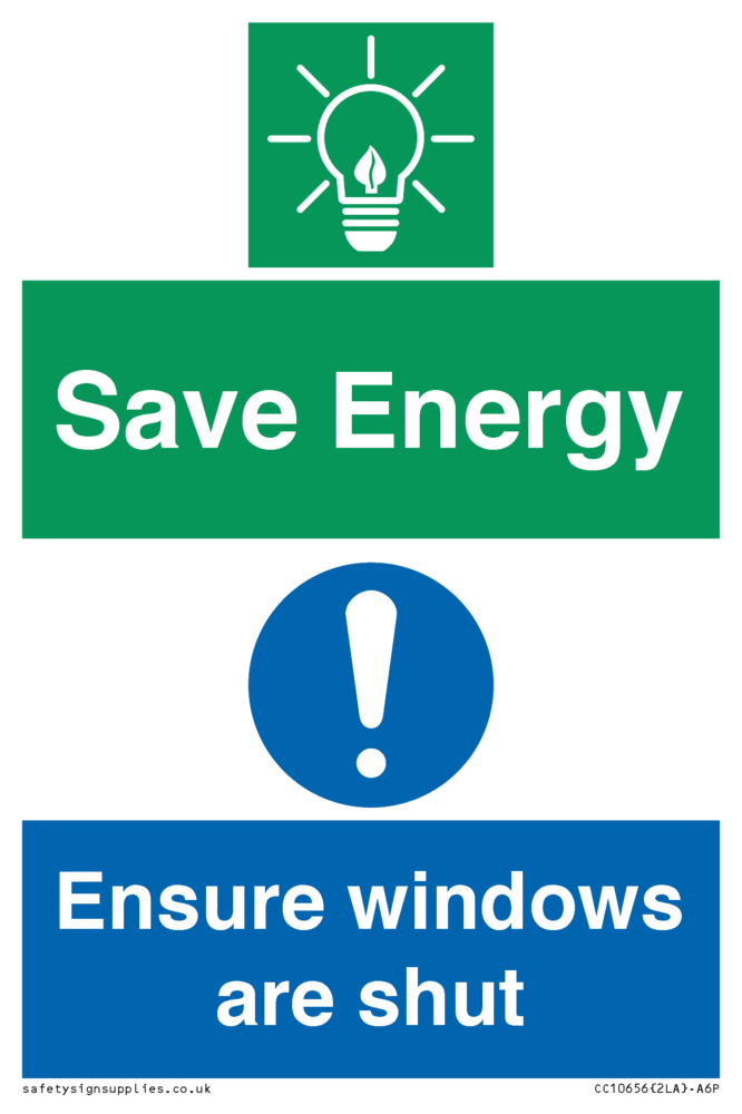 Save Energy - Ensure windows are shut Sign