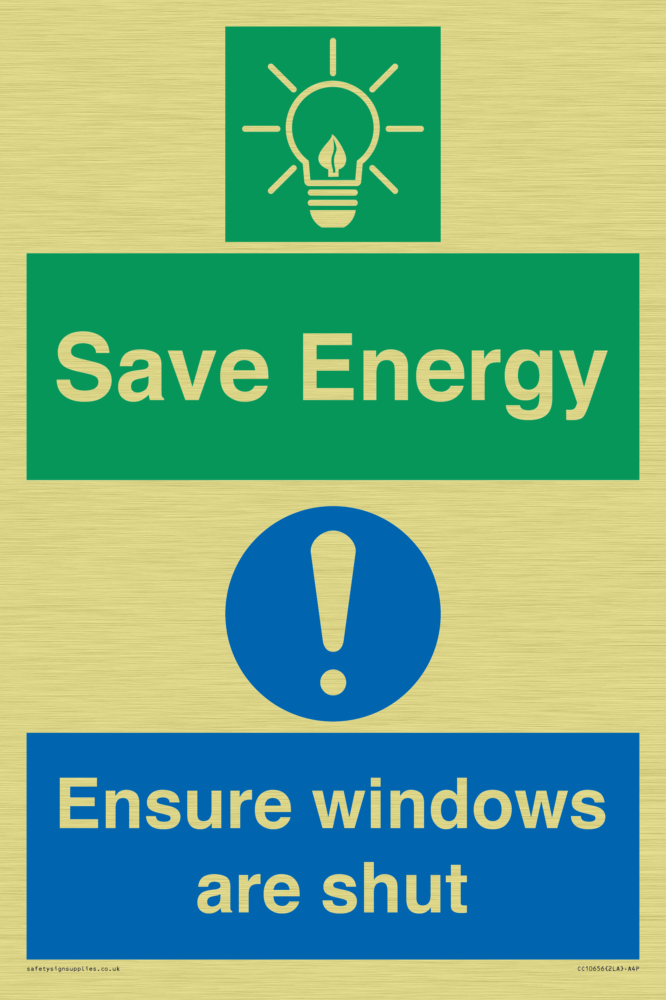 Save Energy - Ensure windows are shut Sign