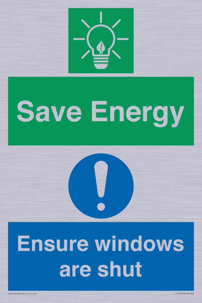 Save Energy - Ensure windows are shut Sign
