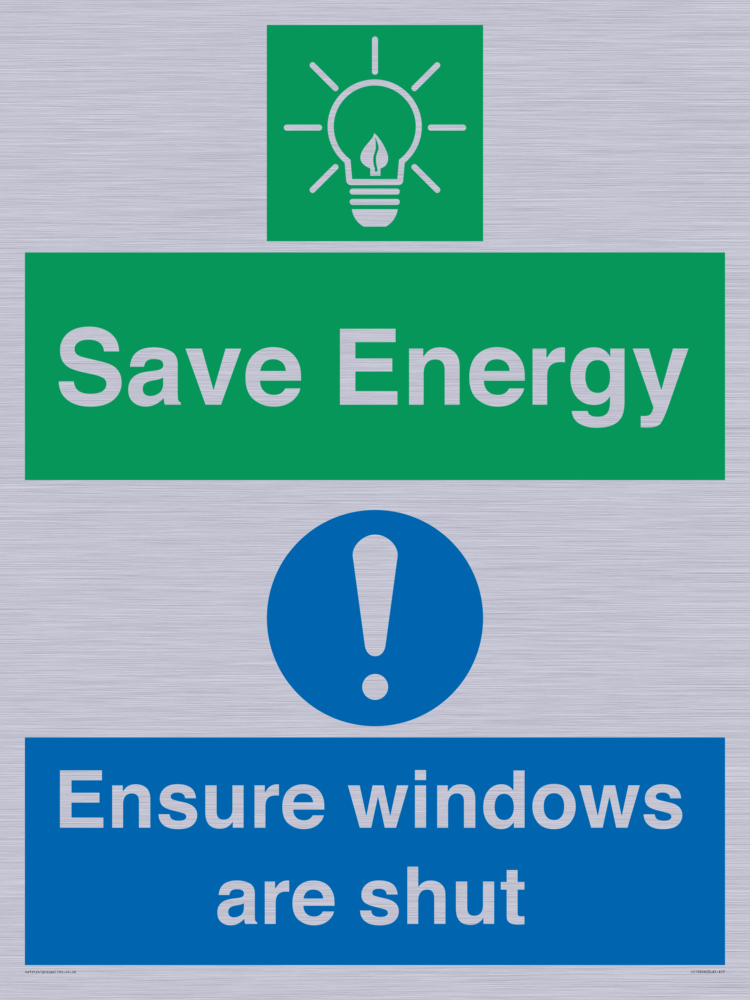 Save Energy - Ensure windows are shut Sign