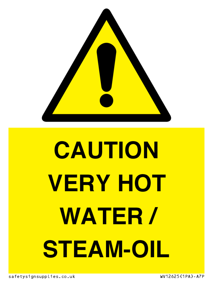 CAUTION VERY HOT WATER / STEAM-OIL Sign