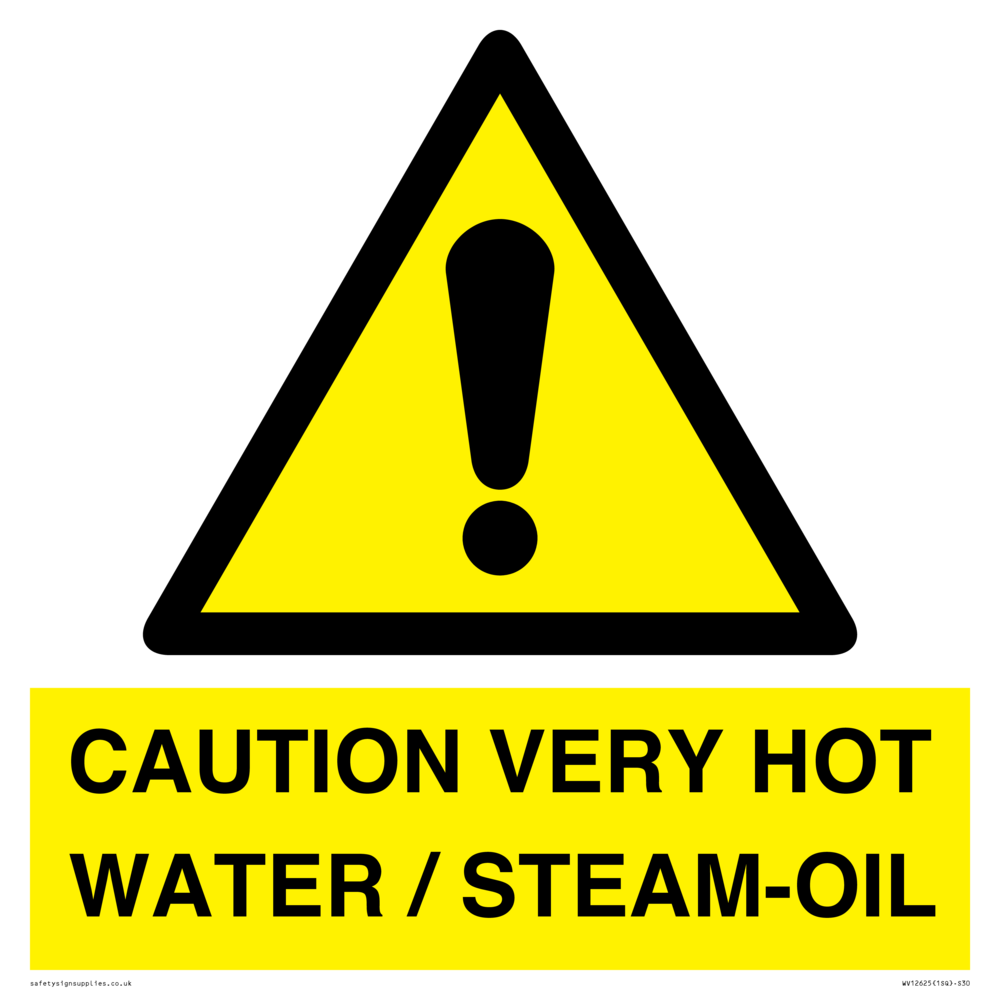 CAUTION VERY HOT WATER / STEAM-OIL Sign